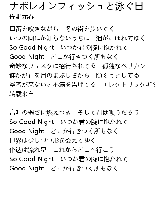 | 歌曲 | ナポレオンフィッシュと泳ぐ日 |