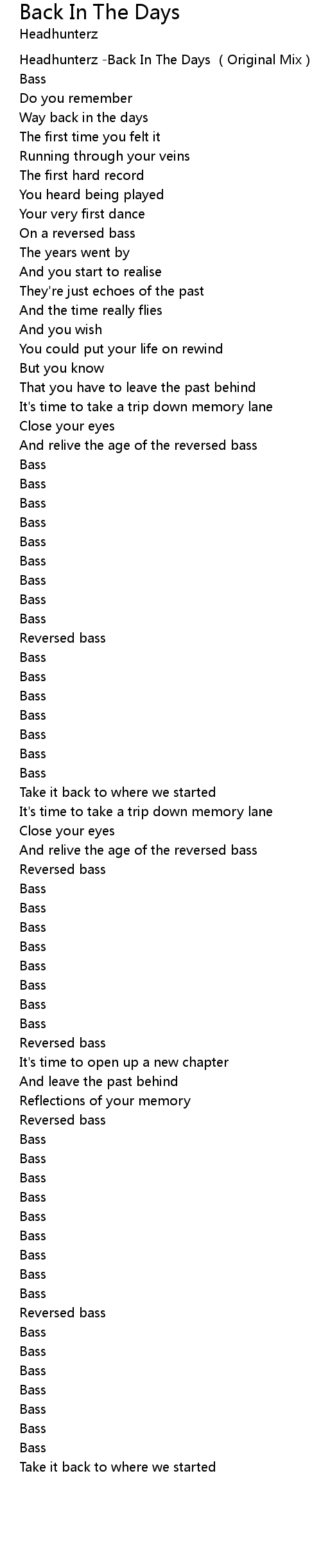 | [00:00.577] | Headhunterz -Back In The Days (Original Mix) |