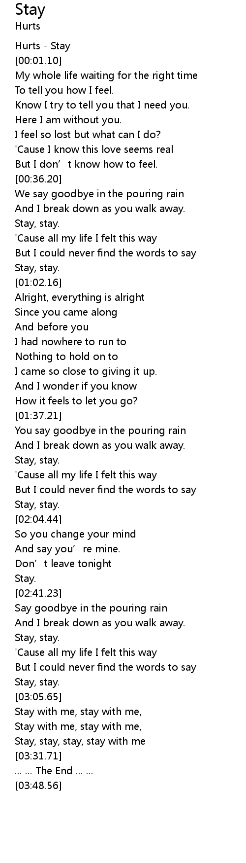 | [03:19.64] | Stay, stay, stay, stay with me |