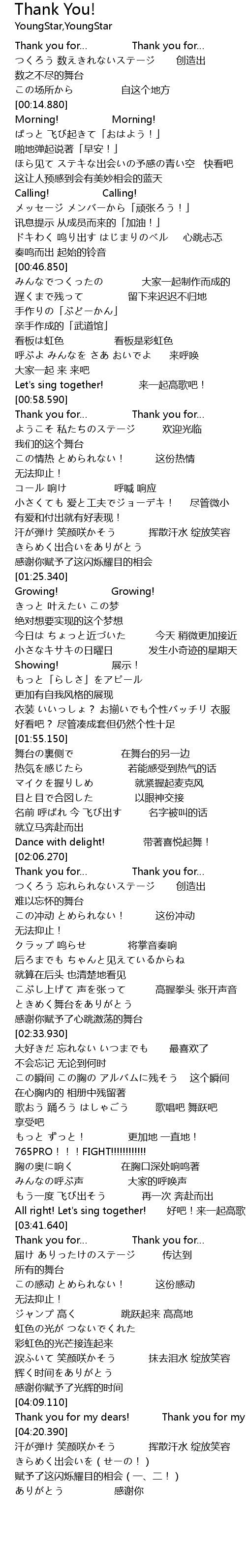 | [03:15.560] | 765PRO!!!FIGHT!!!!!!!!!!!! |
