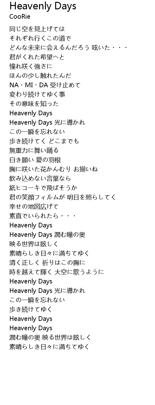 | 君の笑顔フィルムが 明日を照らしてく | |