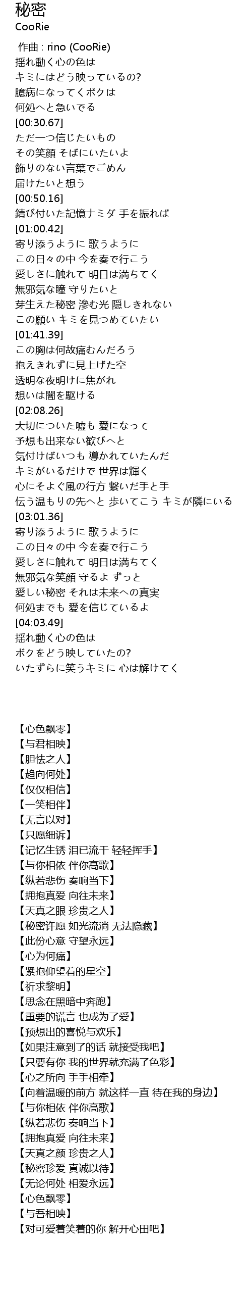 | [03:47.76] | 【秘密珍爱 真诚以待】 |