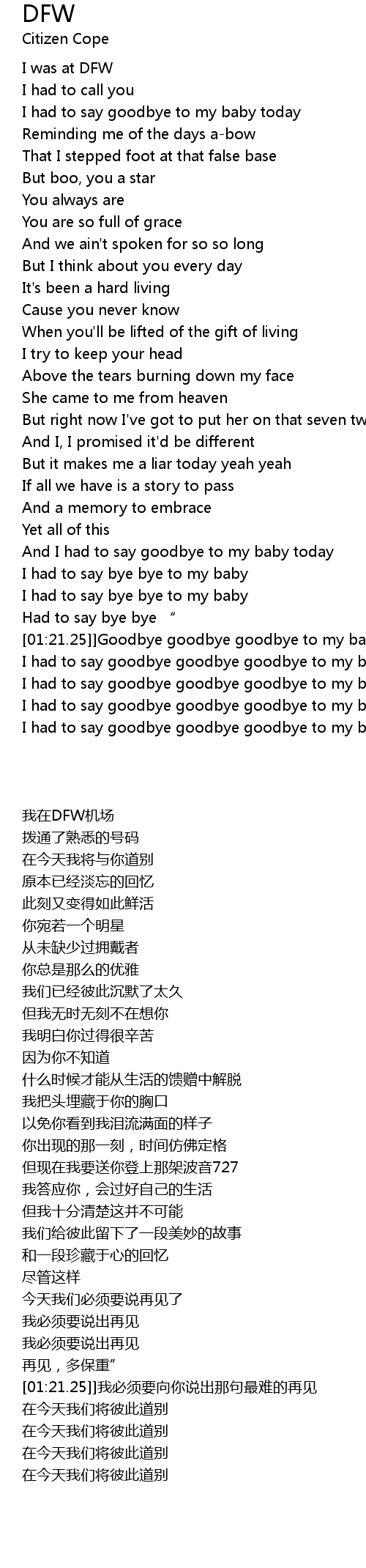 | [01:38.00] | I had to say goodbye goodbye goodbye to my baby today |