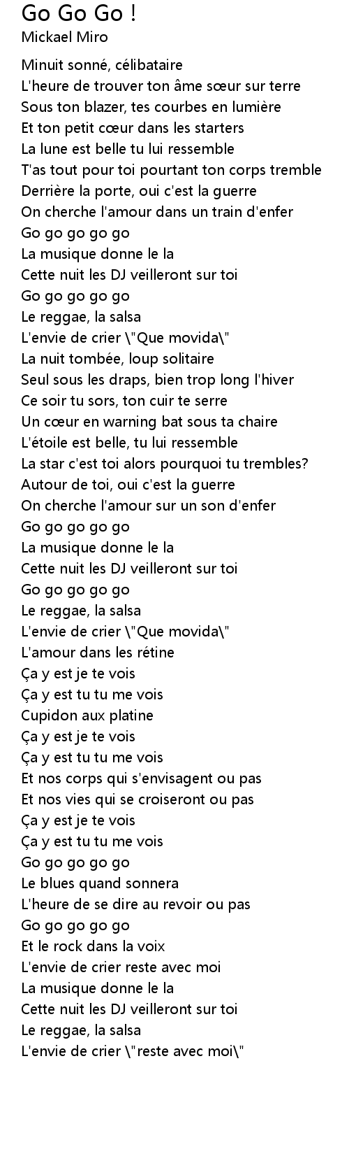 | [00:56.57] | Ce soir tu sors, ton cuir te serre |