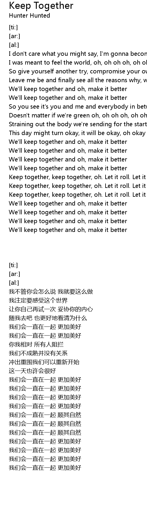 We'll keep together and oh, make it better |