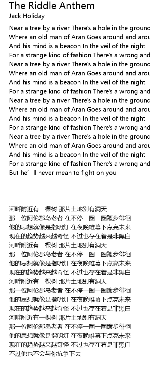 | [02:33.02] | 那一位阿伦郡岛老者 在不停一圈一圈踱步徘徊 |