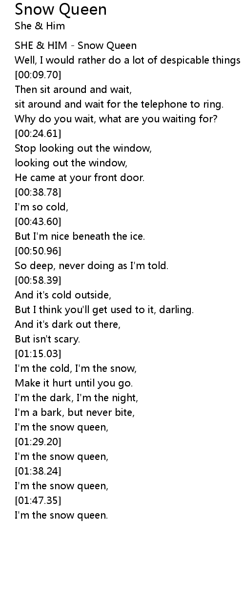 | [00:00.59] | SHE & HIM - Snow Queen |