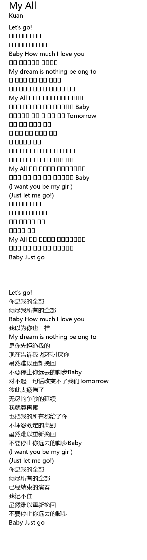 | [01:44.99] | My All 다신 돌이키기 어려워지겠지만 |