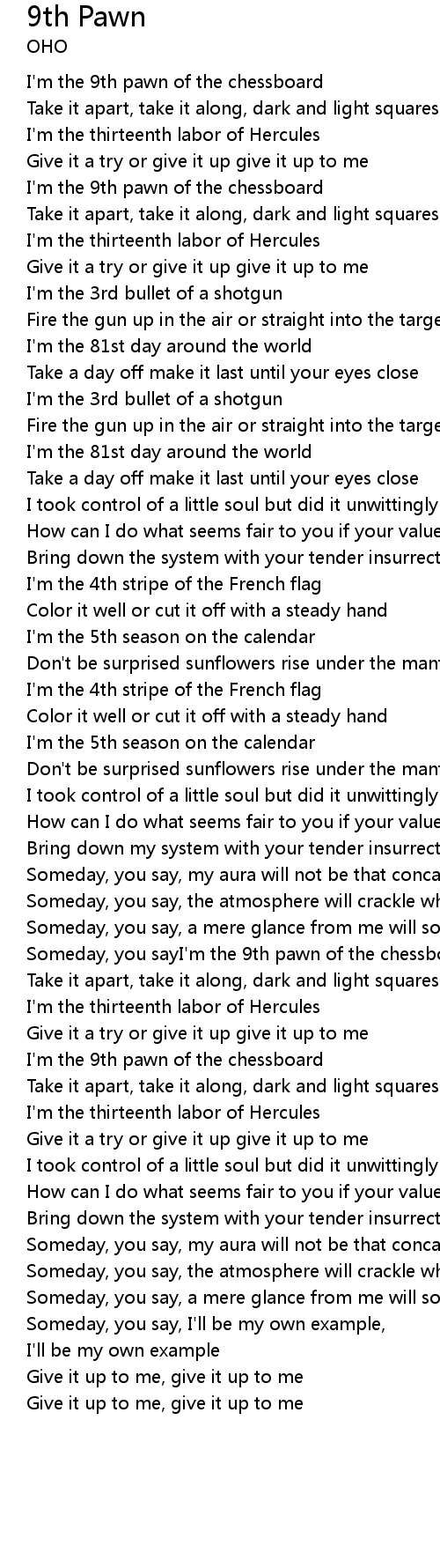 | Someday, you sayI'm the 9th pawn of the chessboard | |
