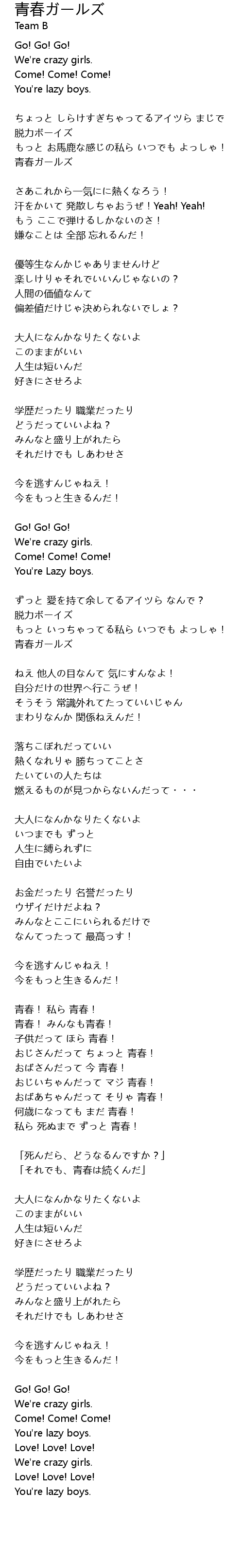 | 私ら 死ぬまで ずっと 青春! | |