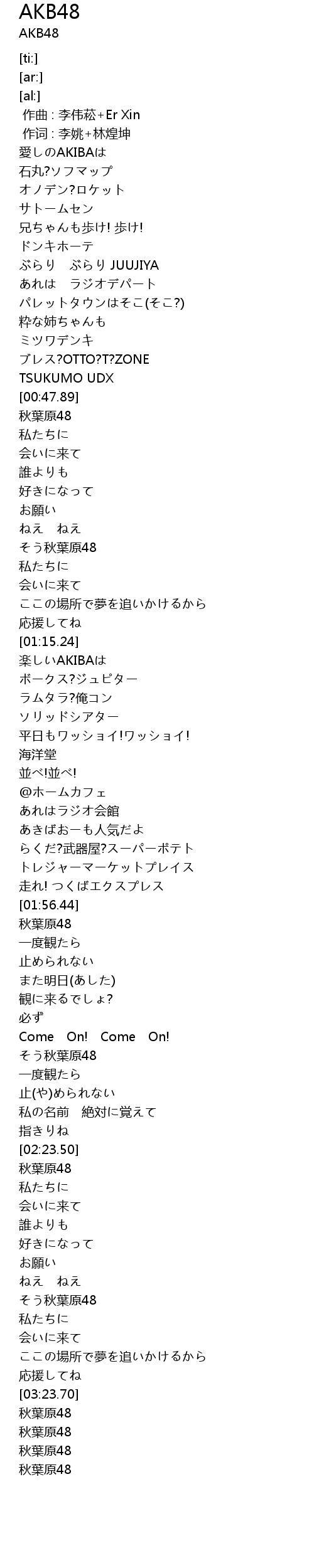 | [01:56.99] | 秋葉原48 |