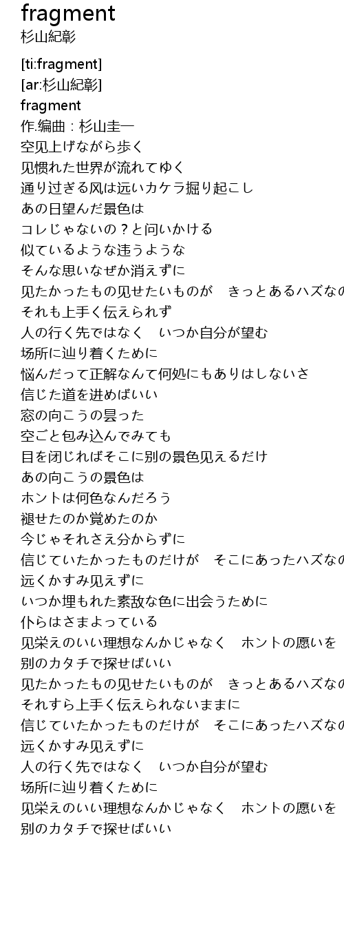 | [00:24.728] | 通り过ぎる风は远いカケラ掘り起こし |