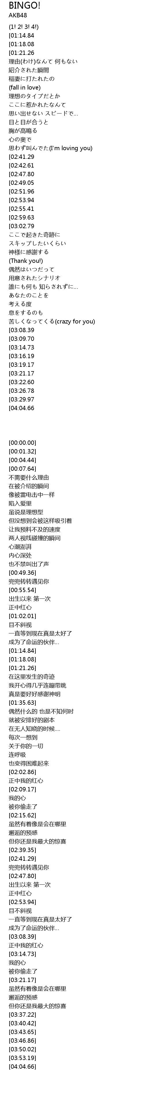 | [01:02.01][02:53.94] | BINGO! BINGO! |
