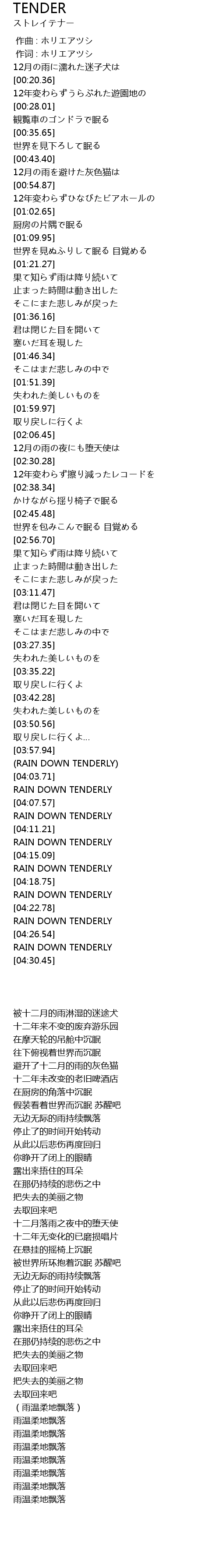 | [04:00.77] | RAIN DOWN TENDERLY |