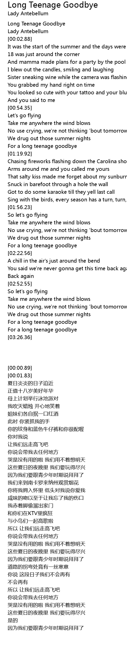 Long Teenage Goodbye |