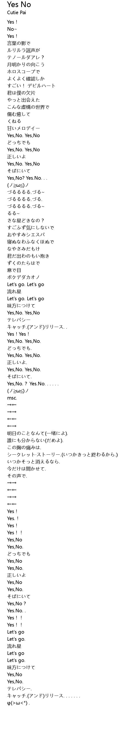| [02:19.81] | Yes, No. Yes, No. |