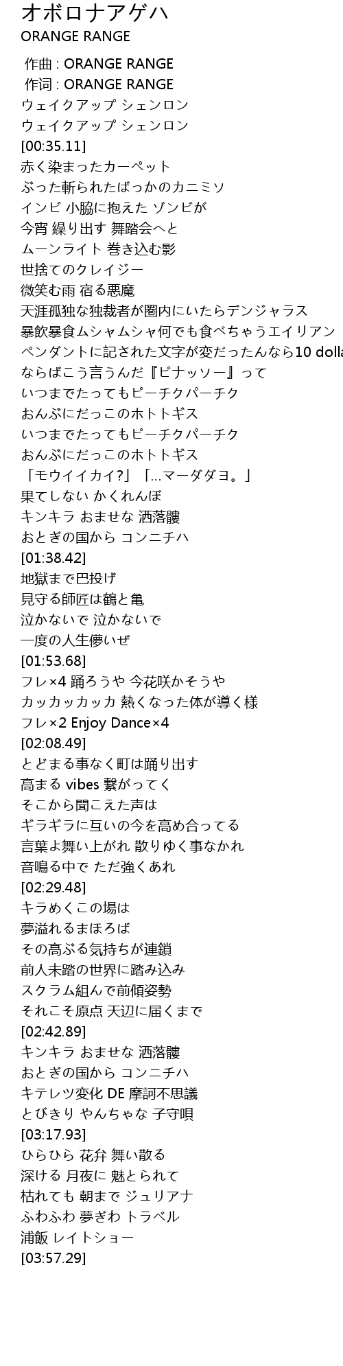 | [00:00.00] | 作曲 : ORANGE RANGE |