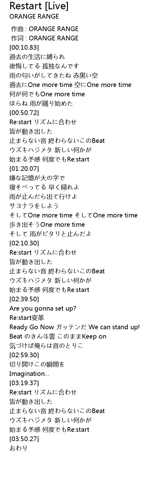 | [00:51.40] | Re:start リズムに合わせ |