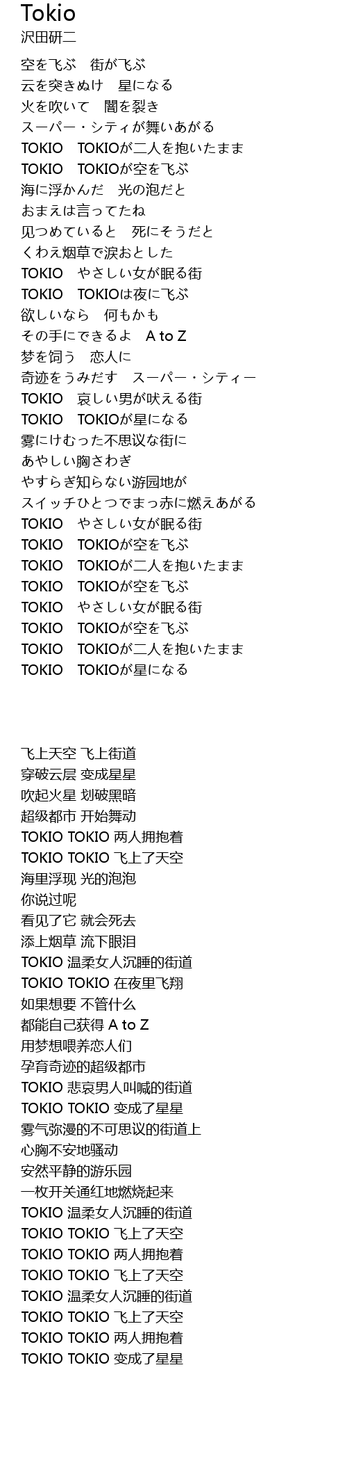 TOKIO TOKIO 飞上了天空 |