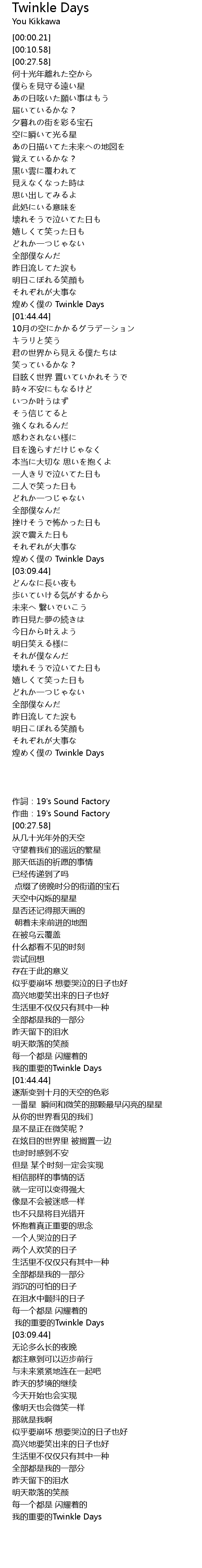 | [03:02.71] | 我的重要的Twinkle Days |