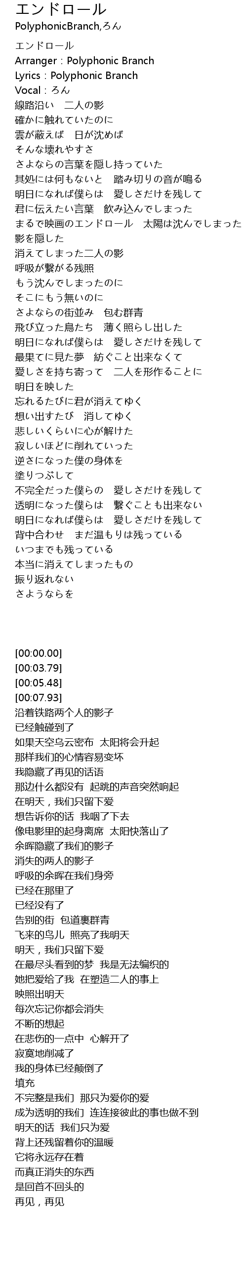 | [00:03.79] | Arranger: Polyphonic Branch |