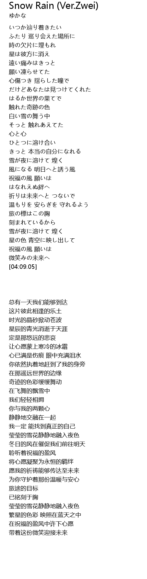 | 歌曲 | Snow Rain (Ver.Zwei) |
