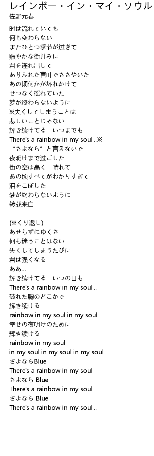 | 歌曲 | レインボー・イン・マイ・ソウル |