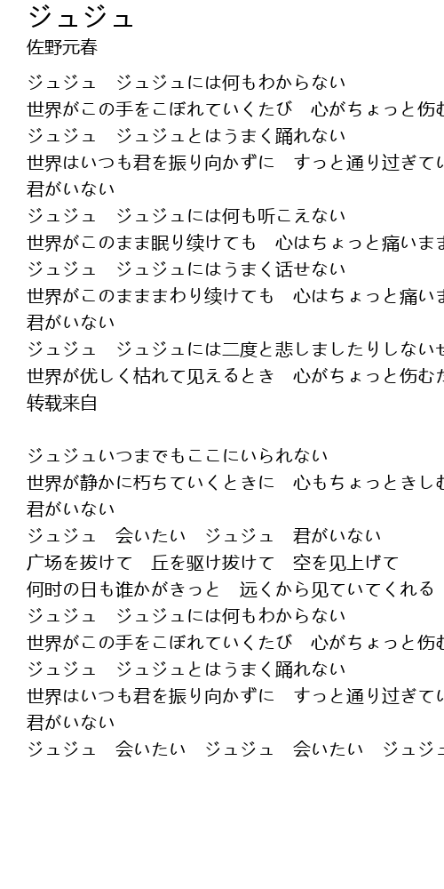 | ジュジュ 会いたい ジュジュ 会いたい ジュジュ 君がいない |