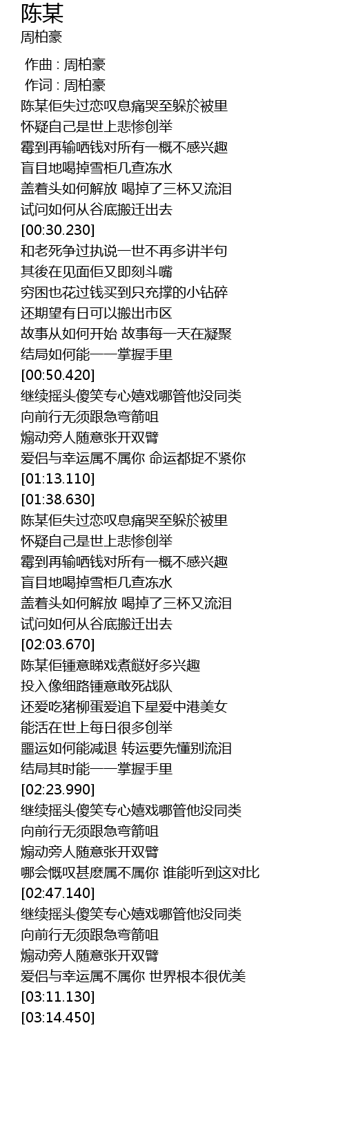 | [02:04.920] | chen mou qu zhong yi di xi zhu song hao duo xing qu |