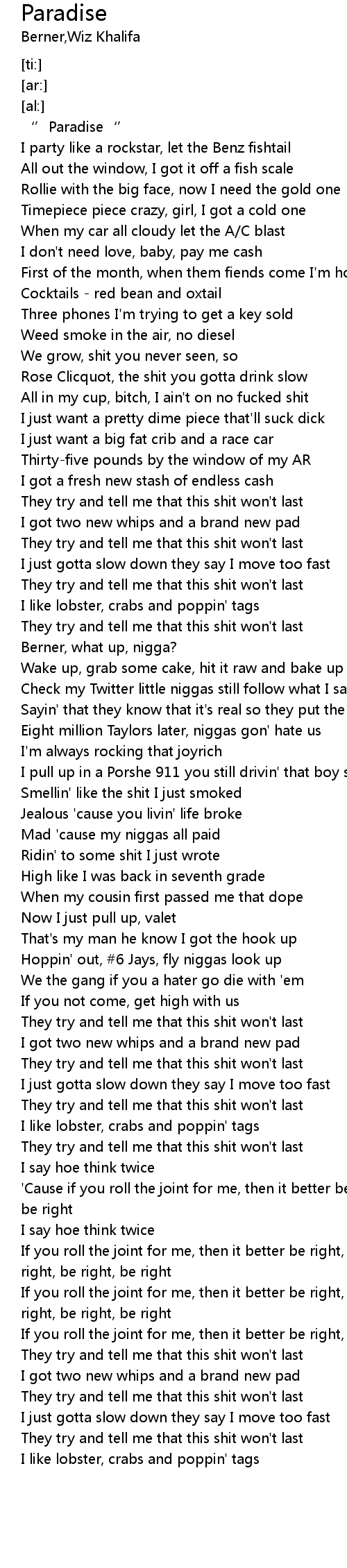 | [02:24.80] | If you roll the joint for me, then it better be right, better be right, be right, be right |