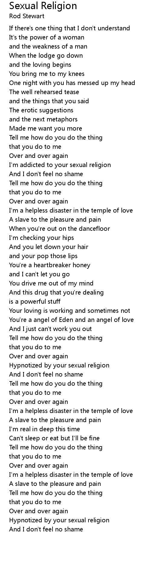 I'm addicted to your sexual religion |