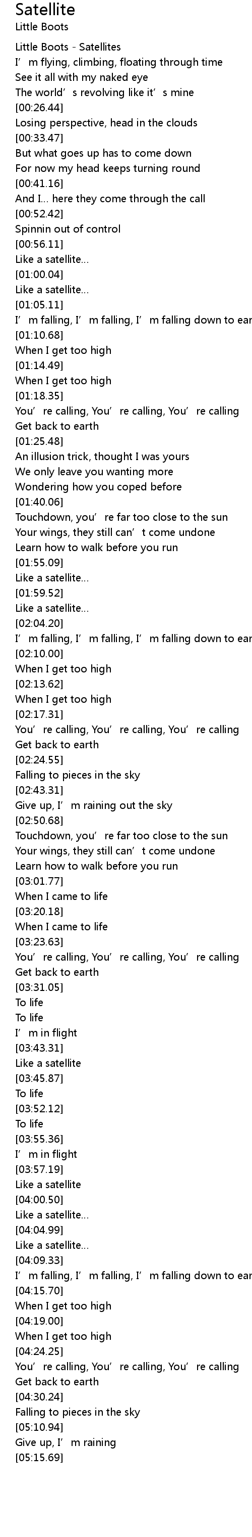 | [03:44.25] | Like a satellite |