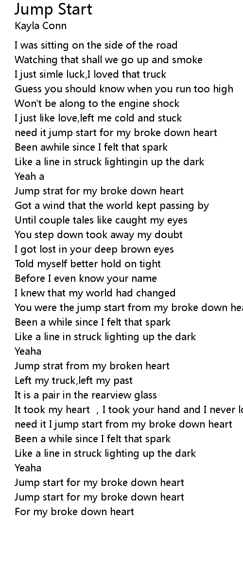 | [00:32.987] | need it jump start for my broke down heart |