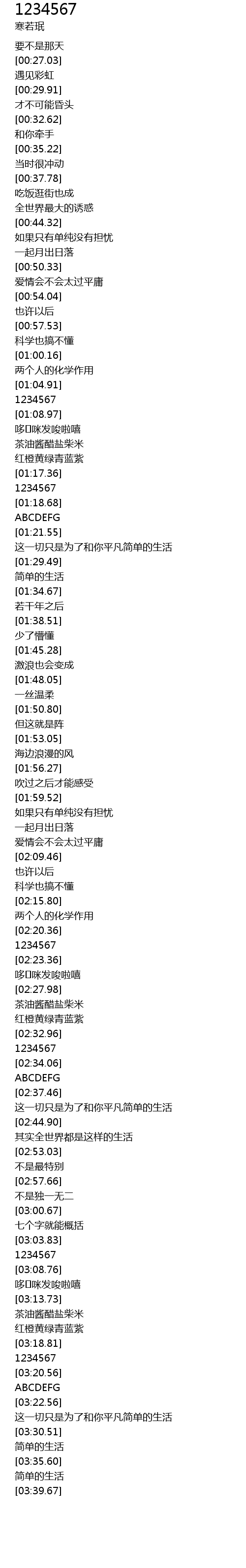 | [01:23.86] | 这一切只是为了和你平凡简单的生活 |