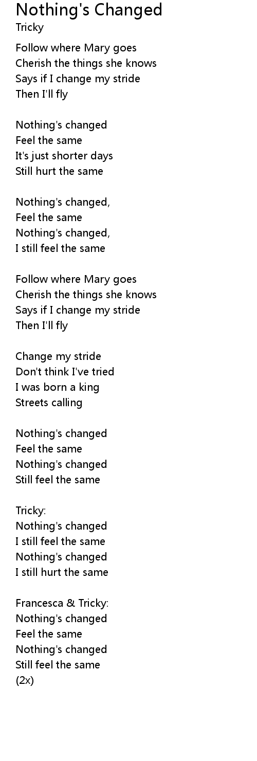 Nothing's changed, |