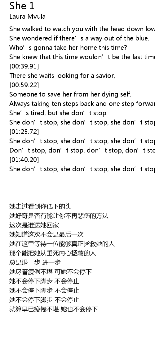 | [01:45.38] | She don’t stop, she don’t stop, she don’t stop--- |