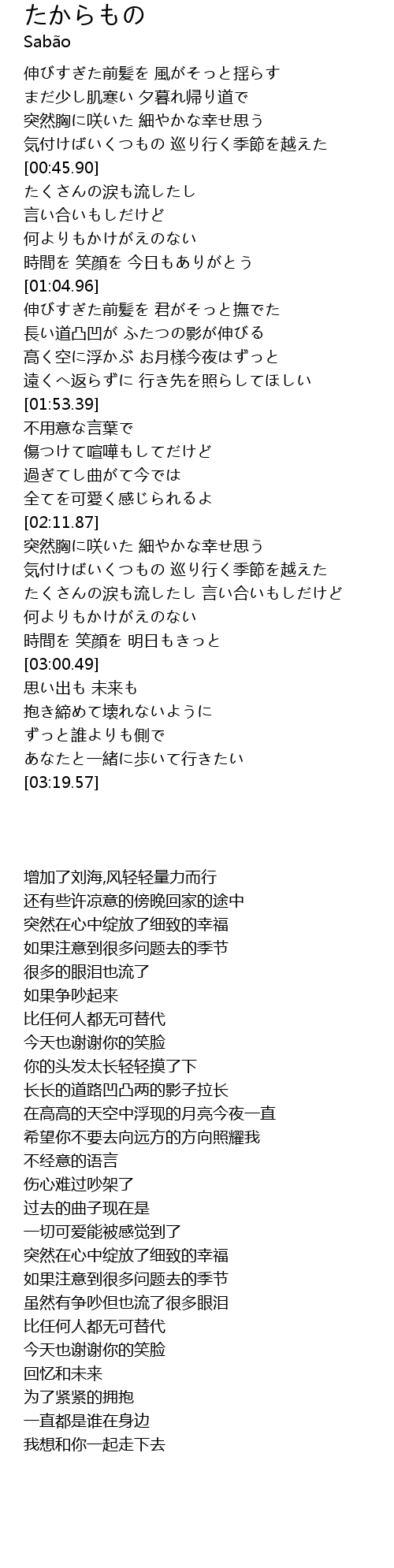 | [02:44.45] | たくさんの涙も流したし 言い合いもしだけど |