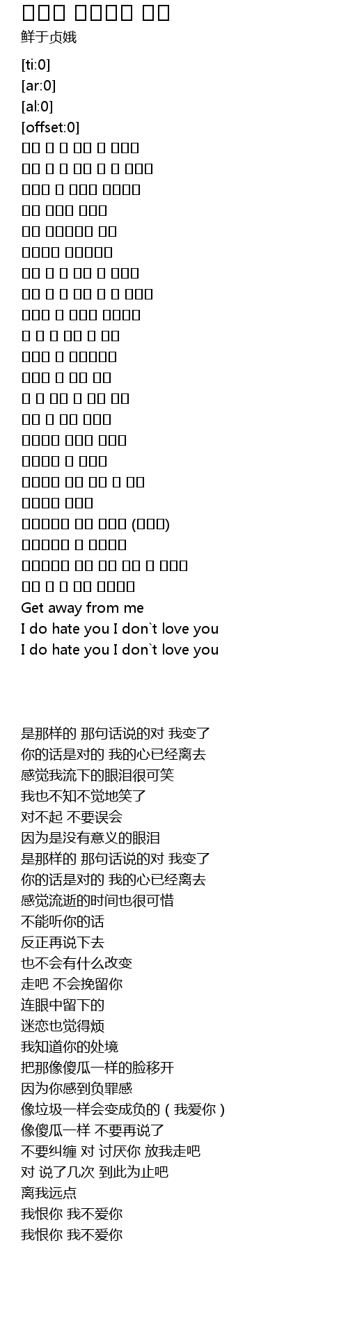 | [03:55.74] | I do hate you I don`t love you |