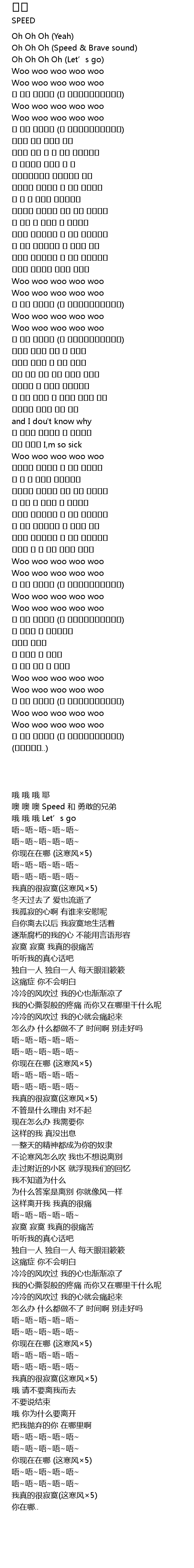 | [00:06.11] | 噢 噢 噢 Speed 和 勇敢的兄弟 |