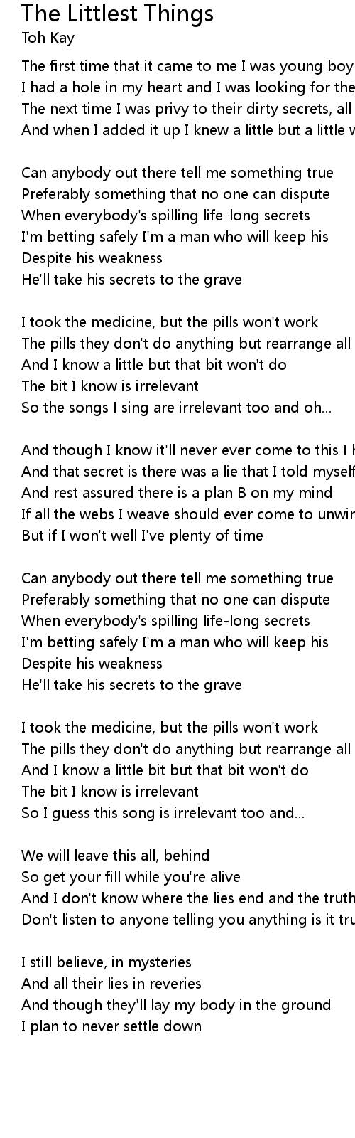 The pills they don't do anything but rearrange all the littlest things |