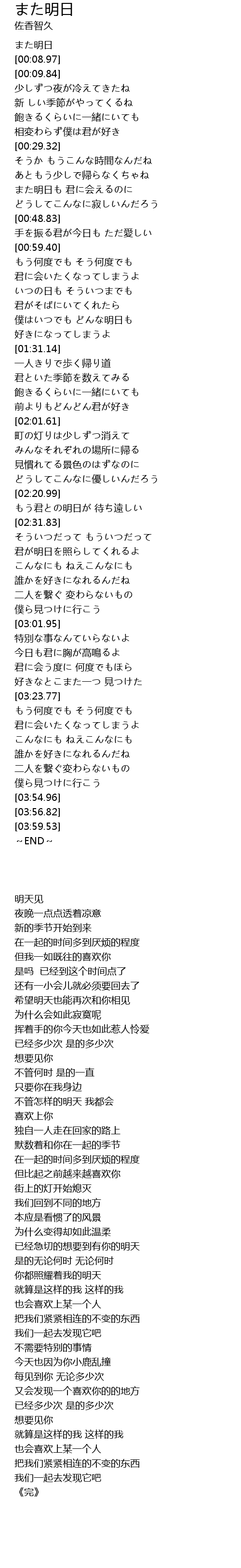| [00:40.19] | 希望明天也能再次和你相见 |