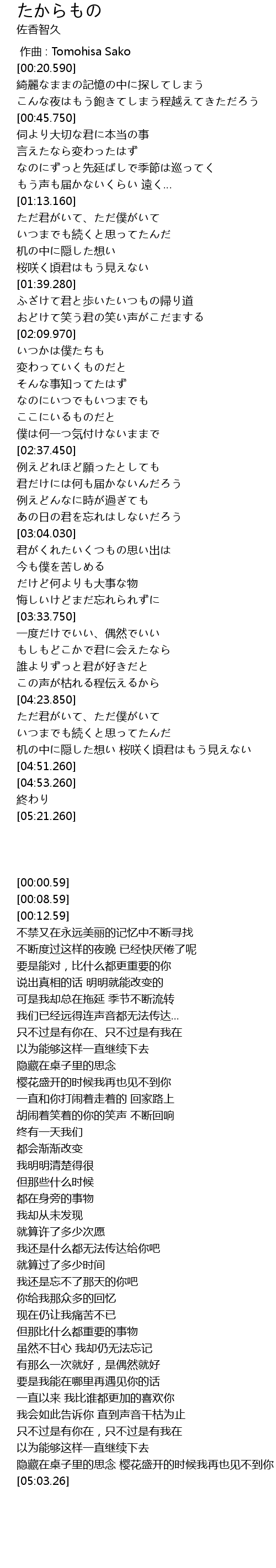 | [00:00.00] | zuo qu : Tomohisa Sako |