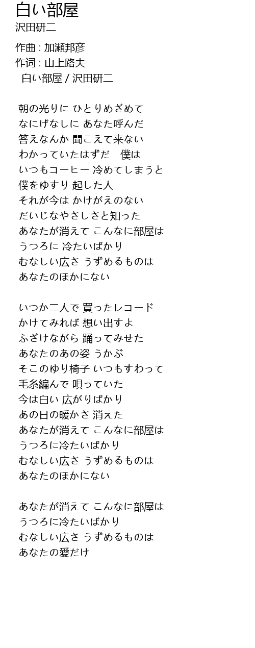 | 歌曲 | 白い部屋 |