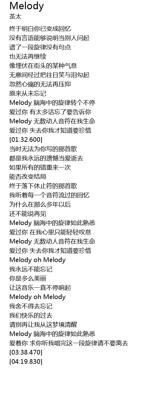 | [02:43.540] | Melody 无数动人音符在我生命 |