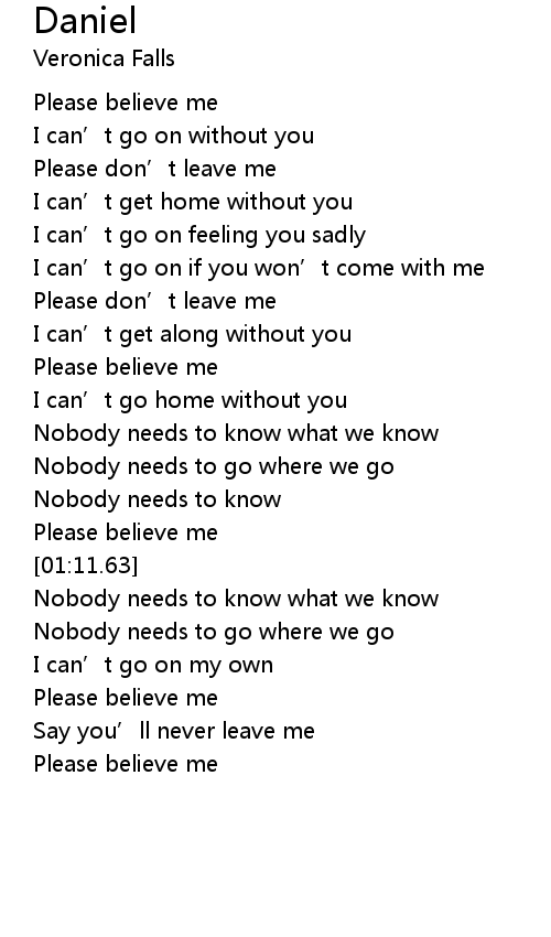 | [00:20.51] | I can' t go on if you won' t come with me |