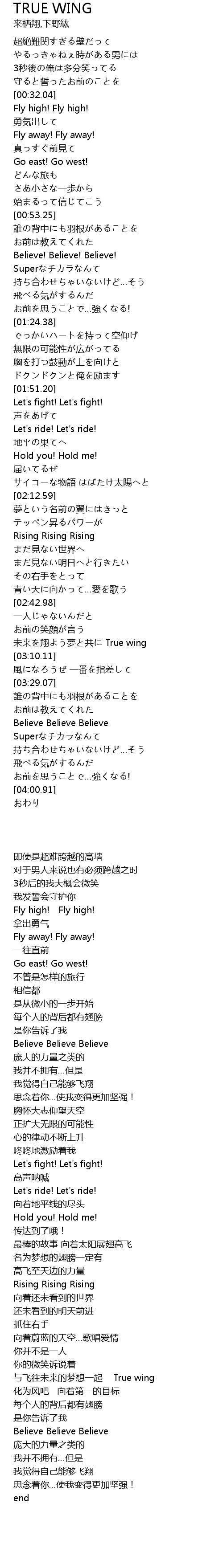 | [03:01.20] | 与飞往未来的梦想一起 True wing |