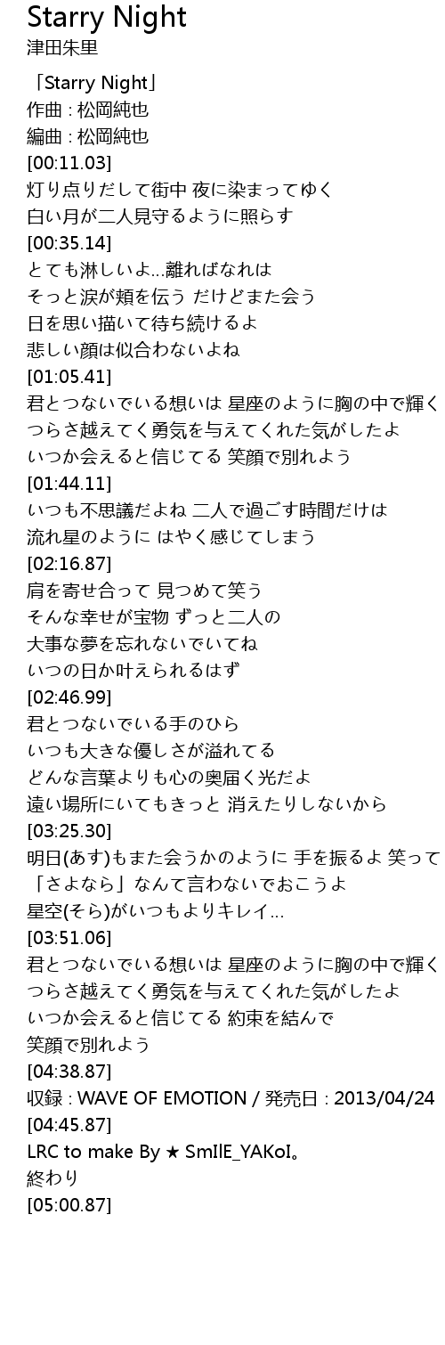 | [04:50.87] | LRC to make By SmIlE_YAKoI. |
