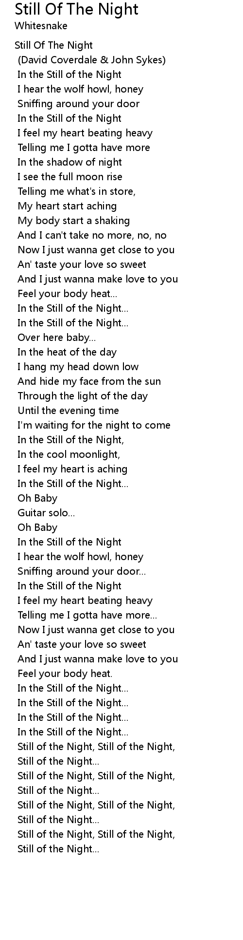 Still of the Night, Still of the Night, |