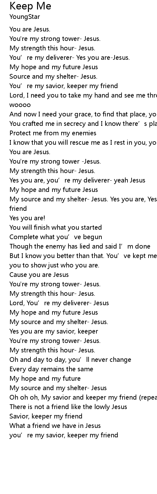 | You' re my savior, keeper my friend | |