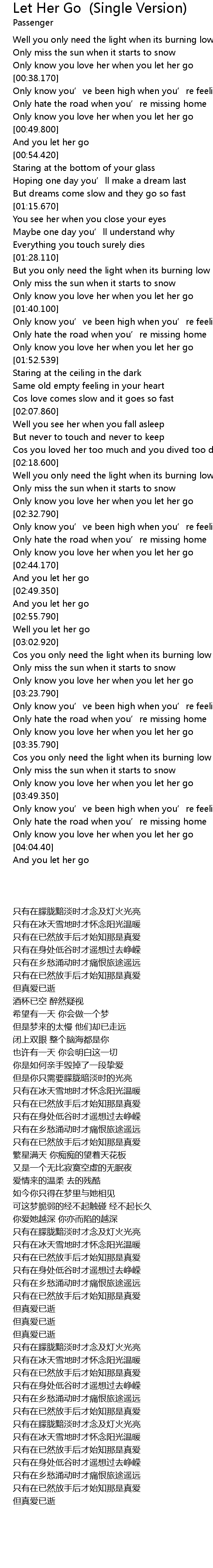 | [03:19.610] | 只有在已然放手后才始知那是真爱 |